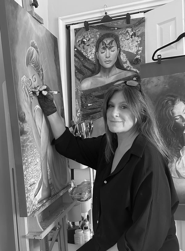 Painting for me has always been an act of deep intimate connection with myself and my life. It has been my meditation and my prayer, my voice and my message to the world. For many years now my work has represented the energy of the feminine, to inspire women to rise up, heal and become empowered within themselves. This ’Sacred Feminine’ can be found in nature and all living things and as women, we reflect it and are beautiful expressions of it. After my book and oracle deck were published, I took a little diversion and painted 12 backyard birds that have held a special place in my heart. This became my ‘Sacred Bird’ series. Then in 2018 I embarked on the Zodiac series, coming back to the female form and expressing each individual zodiac sign in the feminine aspect. I primarily use water-based oils, gold leaf and sometimes collage in my paintings. Lately I have been playing with painting small landscapes which has given me much joy and inspiration. I hope to create more of these and share with the world as they unfold. I am grateful that my work is still evolving and changing and if I can evoke a sense of wonder and beauty, gentleness and strength in my paintings, then I have succeeded.